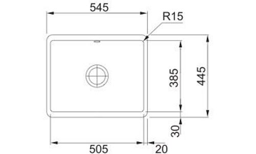 ++ Buitenafmetingen (B x D): 545 x 445 mm ++ Diepte spoelbak: 185 mm ++ Uitsparing (B x D): 495 mm ++