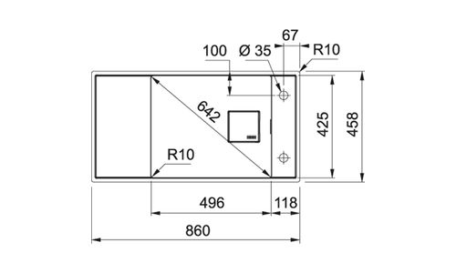 Fresno - Vlakbouw- onderbouwspoeltafel / 860 x 458 mm / 1 bak / Onyx / Omkeerbaar
