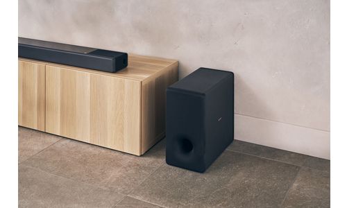 Draadloze subwoofer met geluidsuitvoer van 200 W, driverunit van 160 mm, basreflexspeakerunit, Σ magnetisch circuit en afzonderlijke uitsparingen op de rand