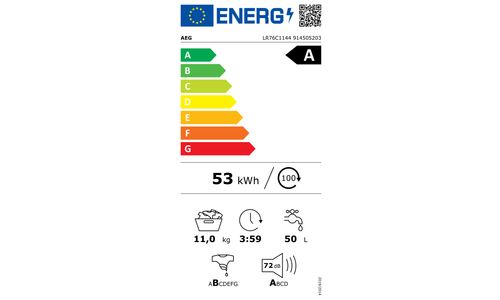 | Energieverbruik per 100 cycli: | 53 kWh |