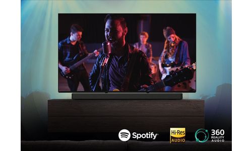 Dankzij de meegeleverde afstandhouder kan de soundbar bovenop de tv-standaard worden geplaatstvoor een harmonieuze en verfijnde stijl.