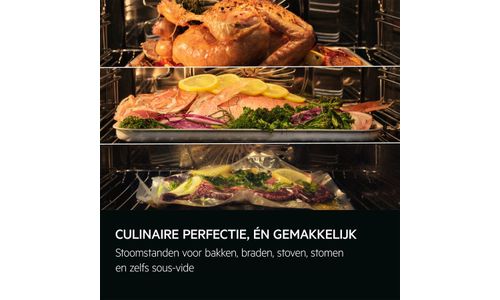 Licht doorbakken biefstuk, gestoomde groenten of vis? De 9000 ProAssist-oven met SteamPro bereidt elk gerecht tot in de perfectie met een druk op de knop. Koken met stoom regenereert restjes, behoudt tot 90% van de vitamine C en verbruikt minder energie.