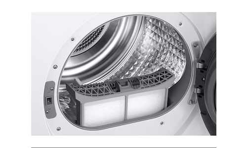 9KG - WARMTEPOMP DROGER - ENERGIELABEL A - DIGITAL INVERTER COMPRESSOR - AI DRY - SUPERSPEED - HYGIENE CARE - OPTIMAL DRY - AIR REFRESH - AI BEDIENING - AI ENERGY MODE - QUICKDRY 35" - OMKEERBARE DEUR - COMPATIBEL MET SMARTTHINGS - DIGITAL INVERTER MOTOR - RACK DRY - KOOLWATERSTOF R290 - WITTE BUITENKANT * ZWART PANEEL * ZWARTE DISPLAY * ZWARTE DEUR * DECO DEUR ZILVER